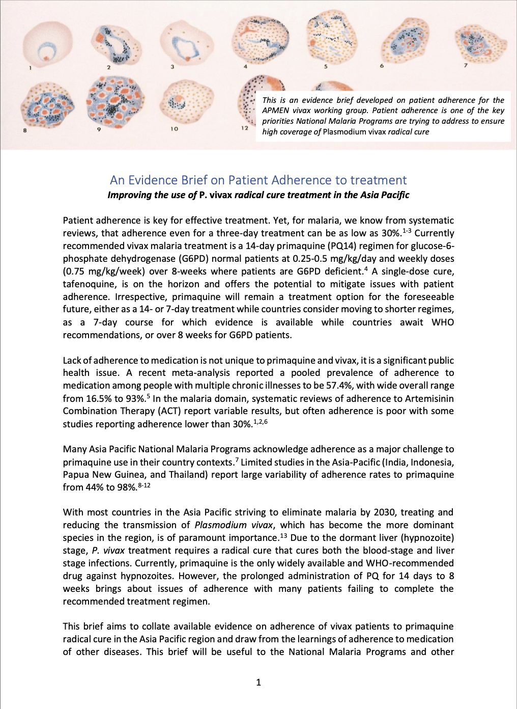 Evaluation of adherence to vivax malaria treatment through educational/informational materials (ADHEVIVAX)