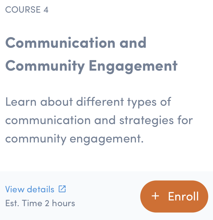 In this module, you will learn about different types of communication and strategies for community engagement. You will practice addressing challenges through communication and learn about incorporating communication planning into the overall planning process.