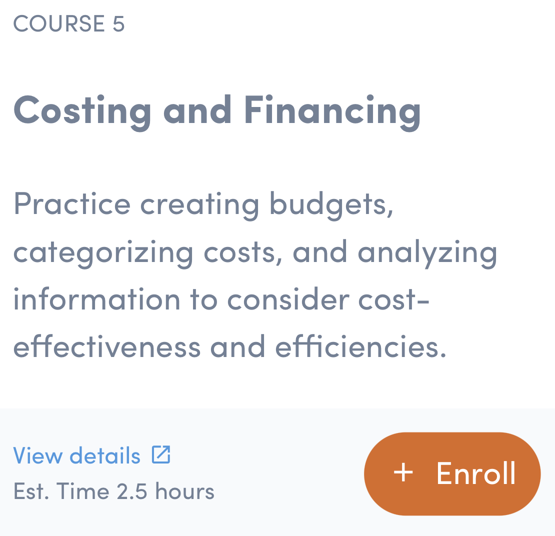 Practice creating budgets, categorizing costs, and analyzing information to consider cost-effectiveness and efficiencies.