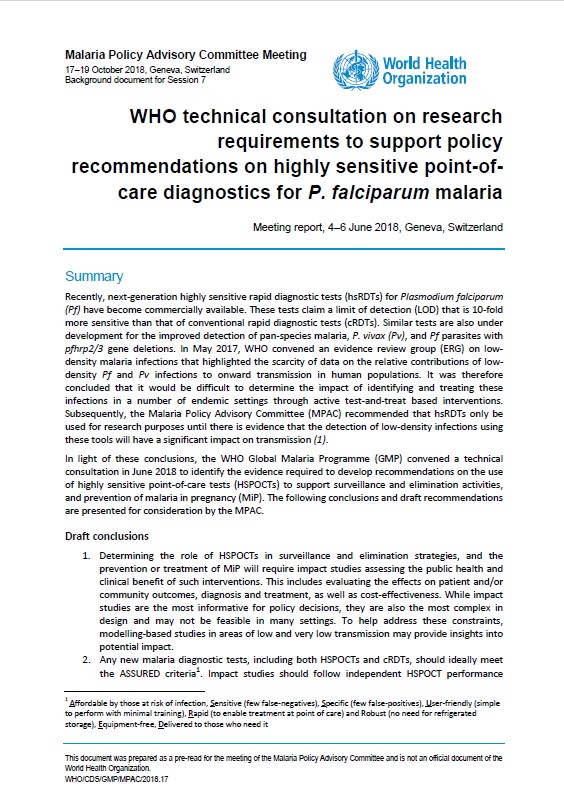 WHO Technical consultation on the role of parasite and anopheline genetics in malaria surveillance